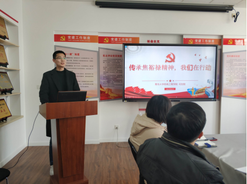 胡玉景老师通过 “加工领域泰斗艾兴院士事迹分享”, 回顾了艾兴院士忠心报国、无私奉献的非凡人生,追思他对党忠诚、献身科学、爱岗敬业、淡泊名利的崇高追求和高尚品格,号召大家自觉加强理论武装,筑牢理想信念,提升品行作风,强化担当作为,为建设高水平综合大学而不懈努力。