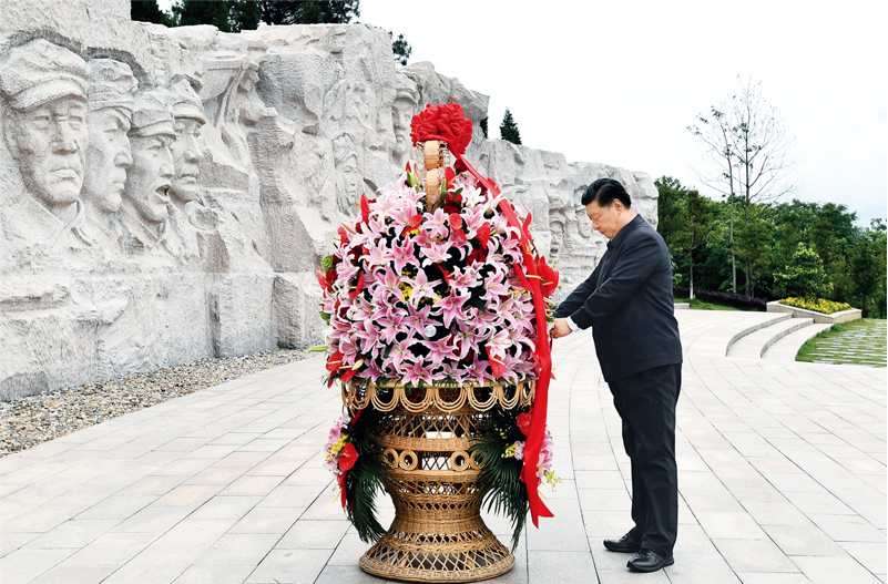 这次考察第一站就是鄂豫皖苏区首府烈士陵园,目的是在庆祝新中国成立70周年之际,缅怀革命先烈,告慰革命英灵。我每次到革命老区考察调研,都去瞻仰革命历史纪念场所,就是要告诫全党同志不能忘记红色政权是怎么来的、新中国是怎么来的、今天的幸福生活是怎么来的,就是要宣示中国共产党将始终高举红色的旗帜,坚定走中国特色社会主义道路,把先辈们开创的事业不断推向前进。