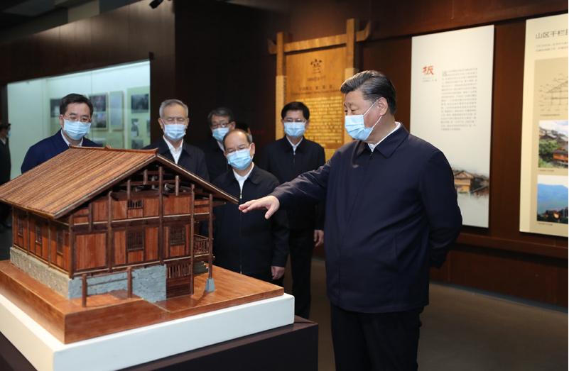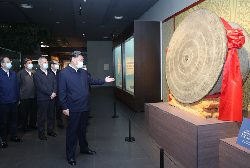 4月25日至27日,中共中央总书记、国家主席、中央军委主席习近平在广西考察。这是27日上午,习近平在南宁市广西民族博物馆参观壮族文化展。新华社记者 鞠鹏 摄