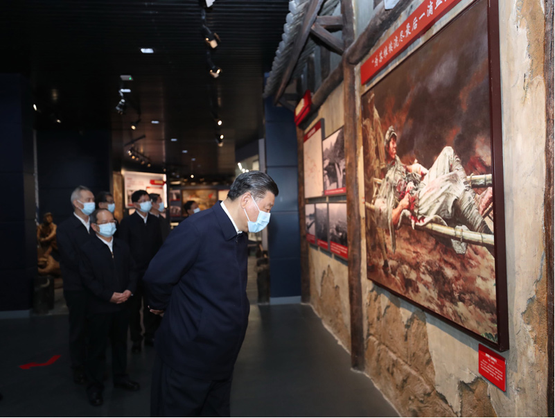 4月25日至27日,中共中央总书记、国家主席、中央军委主席习近平在广西考察。这是25日上午,习近平在桂林市全州县,参观红军长征湘江战役纪念馆。新华社记者 鞠鹏 摄