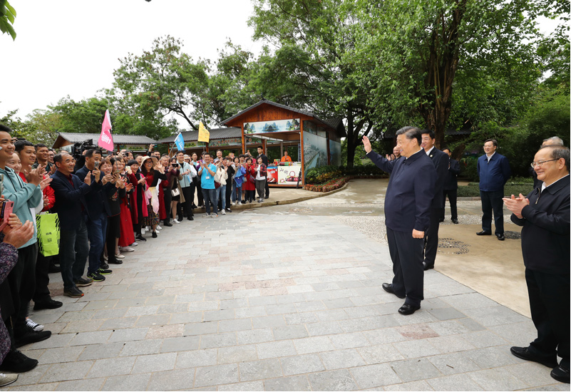 4月25日至27日,中共中央总书记、国家主席、中央军委主席习近平在广西考察。这是25日上午,习近平在桂林市全州县才湾镇毛竹山村考察。新华社记者 鞠鹏 摄