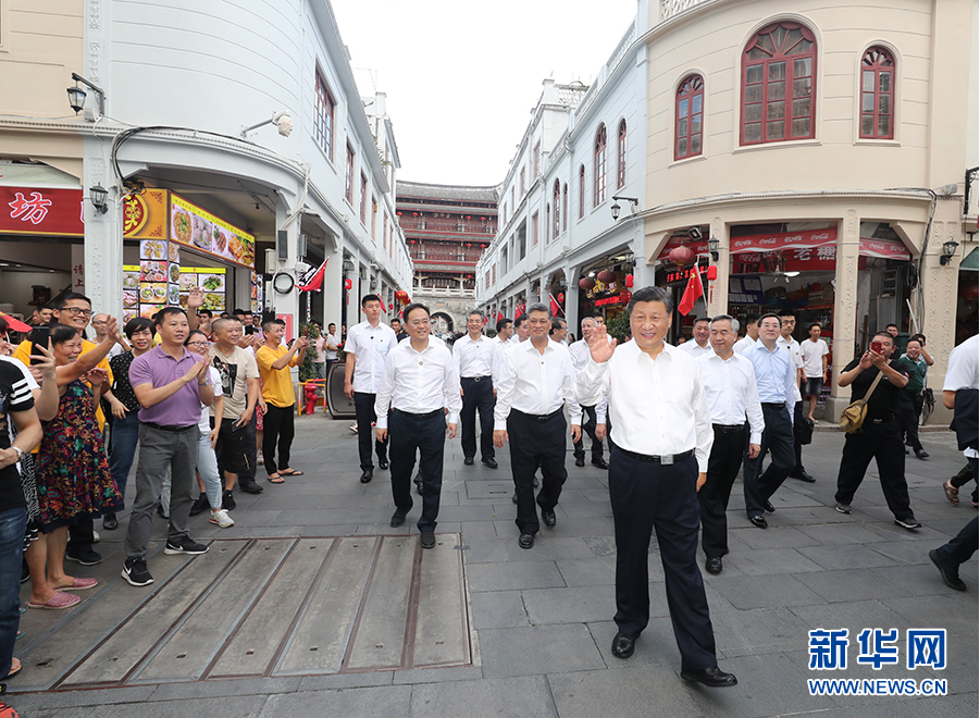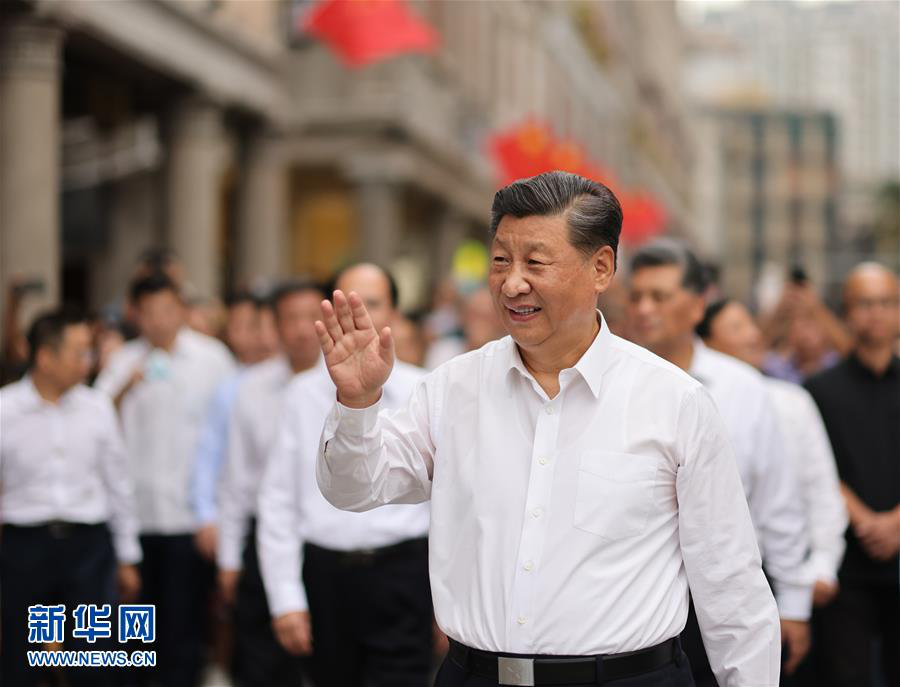 10月12日至13日,中共中央总书记、国家主席、中央军委主席习近平在广东考察。这是13日下午,习近平在汕头市小公园开埠区步行察看街区风貌时,向当地群众和游客挥手致意。 新华社记者 王晔 摄
