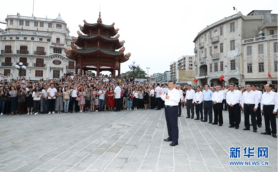 当地群众和游客们见到总书记来了,争相围拢上来向总书记问好。习近平祝大家生活愉快、健康幸福。他指出,我国改革开放和经济特区的建设同大批心系乡梓、心系祖国的华侨是分不开的。我们即将全面建成小康社会、开启全面建设社会主义现代化国家新征程,向第二个百年奋斗目标进军。到本世纪中叶把我国建成富强民主文明和谐美丽的社会主义现代化强国,是海内外全体中华儿女的共同心愿。今年是经济特区建立40周年,我特地来汕头经济特区考察调研,就是要向国内外宣示,中国共产党领导中国人民将坚定不移走改革开放道路,奋发有为推进社会主义现代化建设,锲而不舍实现中华民族伟大复兴的中国梦。希望乡亲们携手努力,共同奋斗!