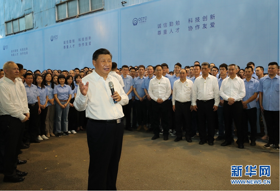 10月12日至13日,中共中央总书记、国家主席、中央军委主席习近平在广东考察。这是12日下午,习近平在潮州市潮州三环(集团)股份有限公司生产车间考察。 新华社记者 王晔 摄