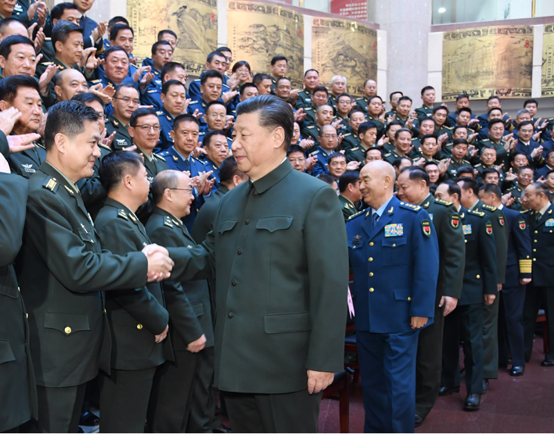 11月27日上午,全军院校长集训在国防大学开班。中共中央总书记、国家主席、中央军委主席习近平出席开班式并发表重要讲话,代表党中央和中央军委,向全军院校长和军事教育战线的同志们致以诚挚问候。这是习近平亲切接见集训班全体学员。