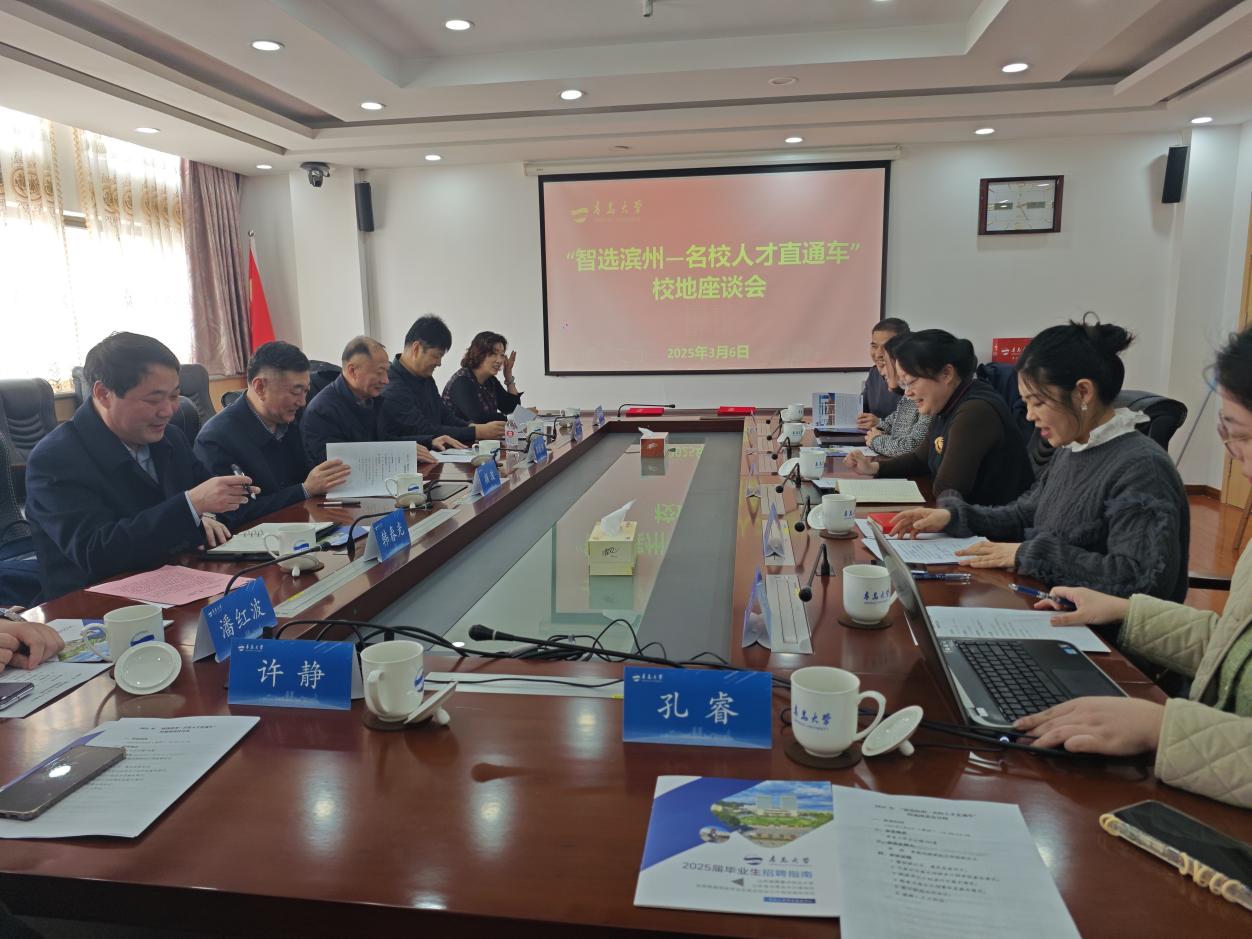 活动期间同步召开校地合作座谈会,滨州市人力资源和社会保障局党组副书记、市公共就业和人才中心主任颜波、学生工作处处长王春、十大菠菜平台 相关负责人等参加座谈交流,双方就深化校地人才合作、优化就业服务等方面展开深入探讨。